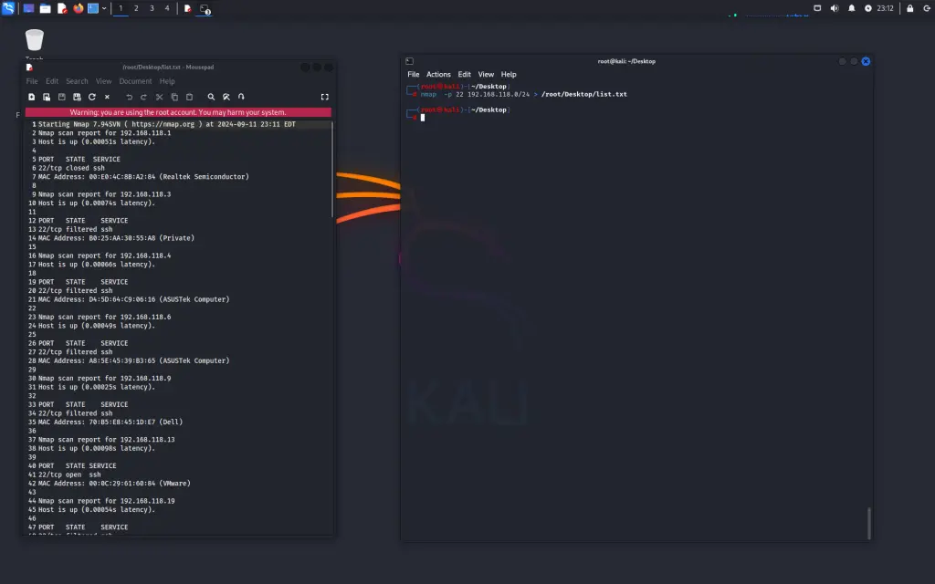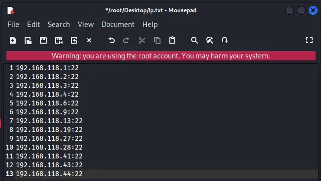 nmap -p 22 192.168.118.0/24 > /root/Desktop/list.txt