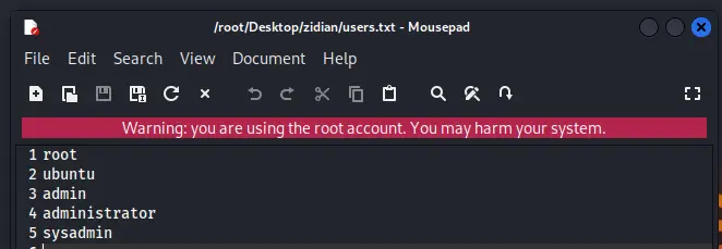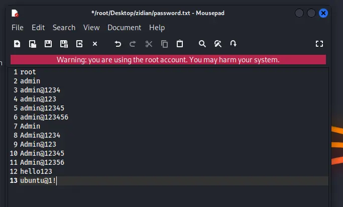 准备用户、密码的字典,爆破目标IP地址(能否爆破成功,取决于字典的数据量!)这里只是为了演示。