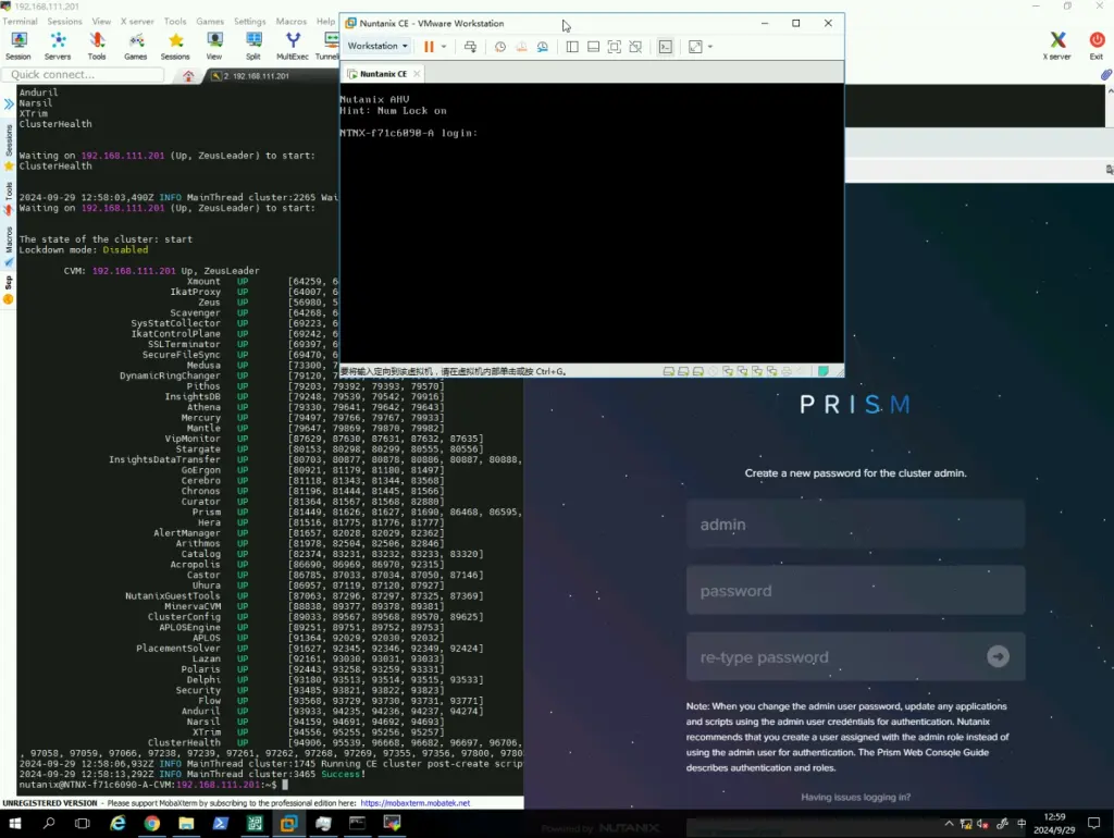 等待服务器都状态 up 后,可通过 https://<cvm_ip>:9440 访问集群。使用用户名 admin 初始密码 nutanix/4u 登录Prism。