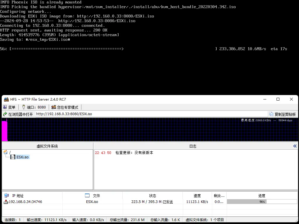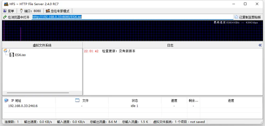 由于部署期间需要指定ESXi ISO镜像的URL路径,我本次将通过HFS将ESXi的ISO以http协议分享,同时并将其更改为简单的命名,便于后续手动输入。
