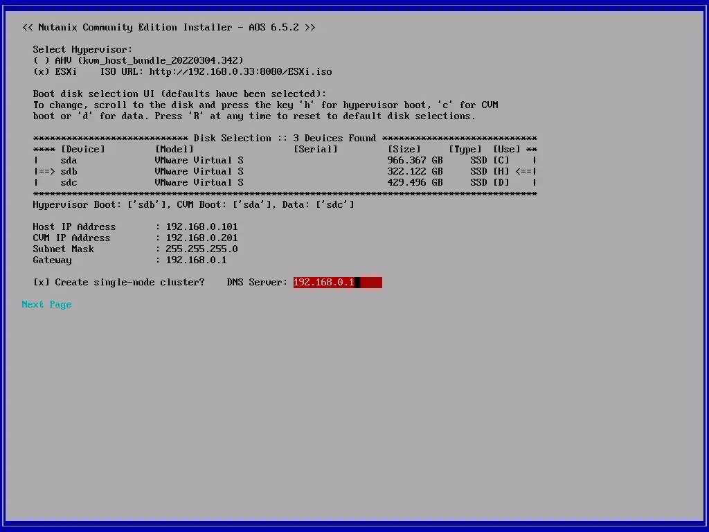 在本博客中,我将创建一个 1 节点“集群”并提供创建 3 节点集群的指导。同时分别使用AHV和ESXi两者部署方式,但关于ESXi的部署方式,由于网卡驱动缘故,无法完整的演示其过程,仅作为学习记录。