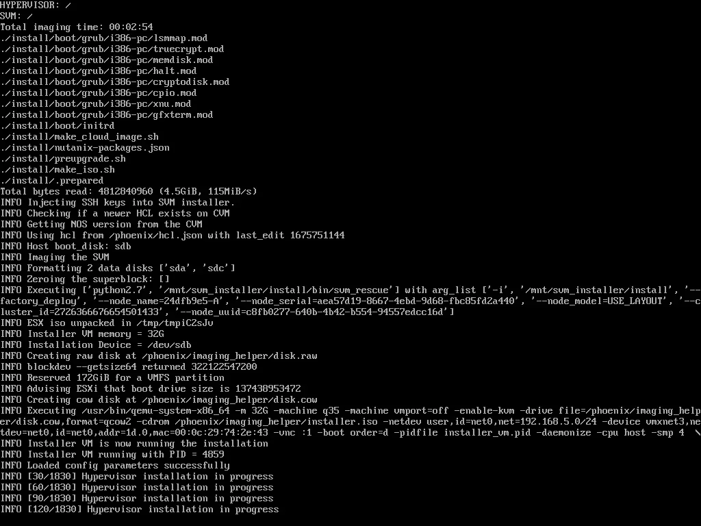在部署进度条中可以看到其进度是先部署Hypervisor,这里其实就是在对ESXi进行配置,同时再将CVM虚拟机部署在ESXi上。