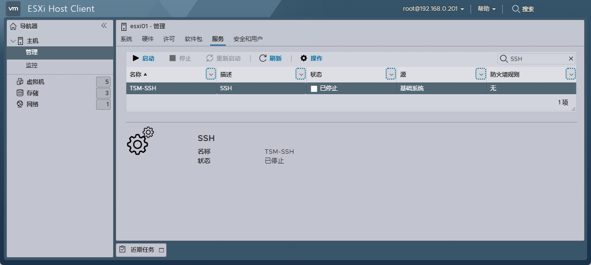 点 “管理” “服务” 搜索 “SSH” 并点击 “启动”