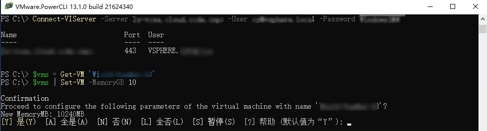 批量调整虚拟机内存,可以指定单个虚拟机名称或使用 * 作为通配符。