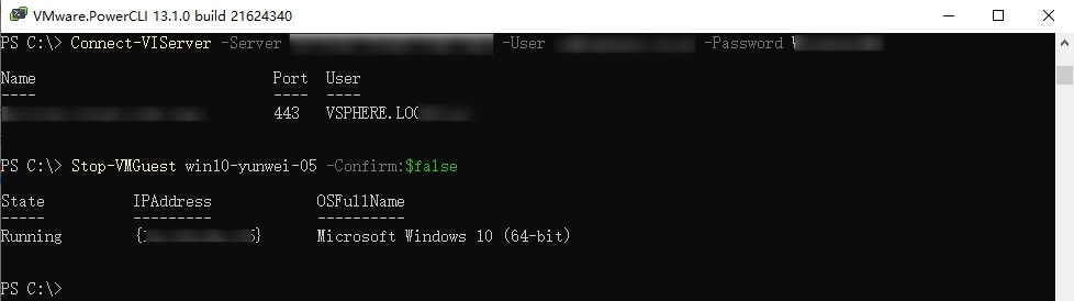 Stop-VMGuest win10-yunwei-05 -Confirm:$false