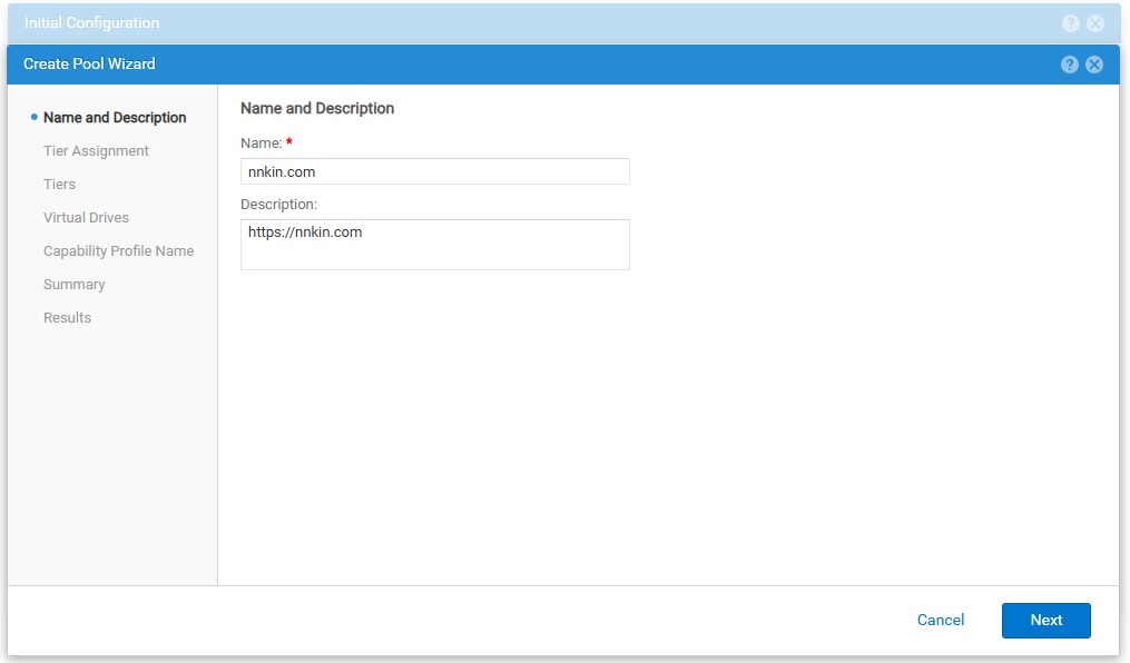 设置存储池的名称和描述。