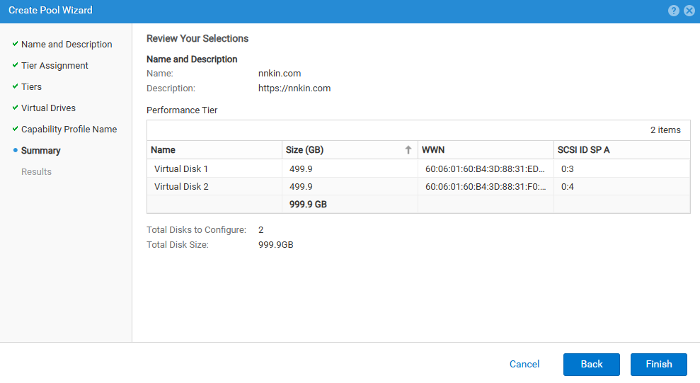这里将用到之前我们为UnityVSA配置的两块500G硬盘来创建存储池。在将磁盘加入到存储池之前,需要对硬盘进行存储分层。