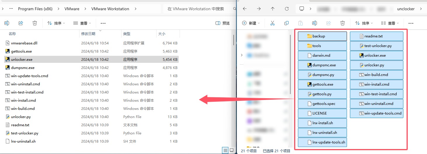 - 将解压缩后的Unlocker工具拷贝到VMware Workstation安装目录