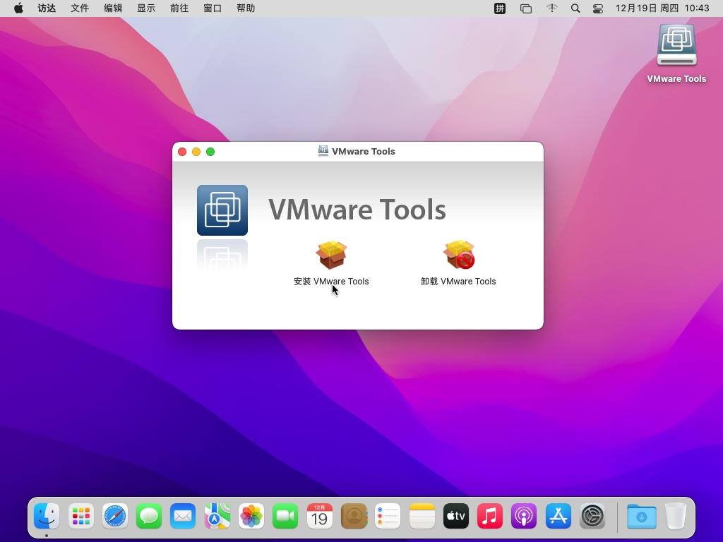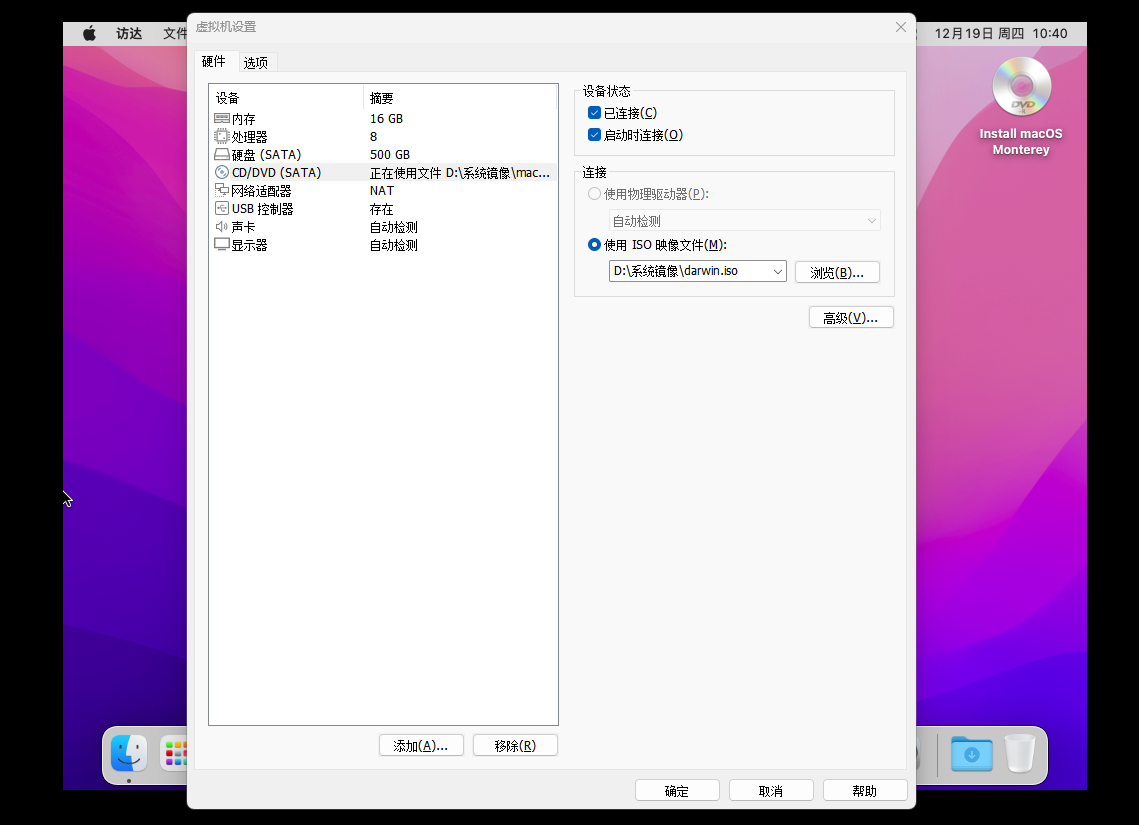 系统安装完成后,编辑虚拟机,光驱指定VMware Tools 镜像用于挂载安装,安装以优化性能和用户体验安装后需要重启。