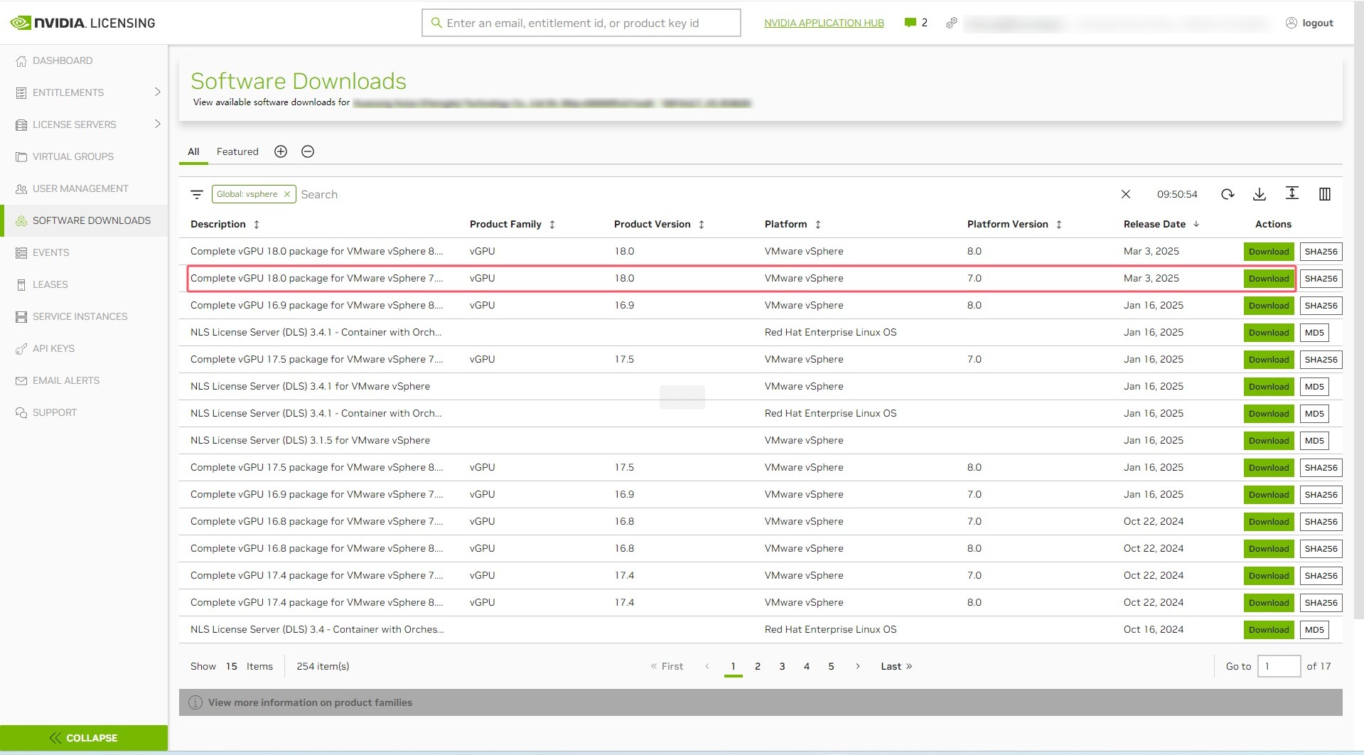 需要先到NVIDIA企业门户上下载对应版本的驱动,我这里使用的是7.0的vSphere。