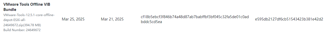 先到博通官网下载最新的VMware Tools 离线核心包,传送门:VMware Tools 12.5.1 Download