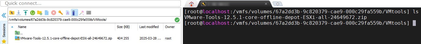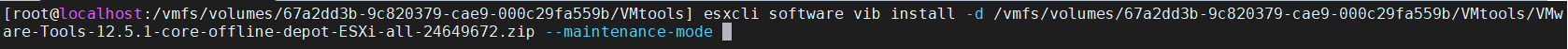 esxcli software vib install -d /vmfs/volumes/67a2dd3b-9c820379-cae9-000c29fa559b/VMtools/VMw