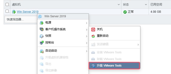 - 选择自动升级VMware Tools