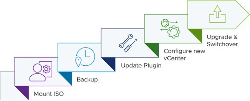 然而,和过往版本更新升级工作流程最主要的差别在于,新旧版本vCenter 管理平台之间,在vCenter 资料库和组态设定资料复写期间,旧版本的vCenter 管理平台仍然能够正常运作,执行相关进阶特色功能并管理虚拟化基础架构,整个版本更新升级工作流程中,唯一会产生停机时间的部份,就是在vCenter 资料库和组态设定复写程序完成后,管理人员正式触发切换工作任务,将旧版本vCenter 停止系统服务,由新版本vCenter 接手后启动系统服务的这段期间,原则上来说会在五分钟之内完成,这和过往版本更新升级的停机时间相比减少许多。