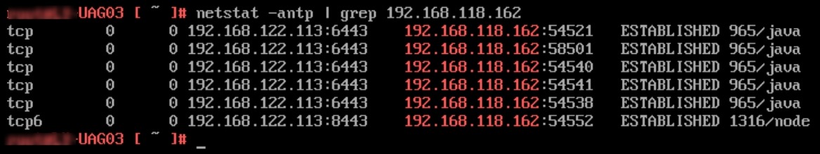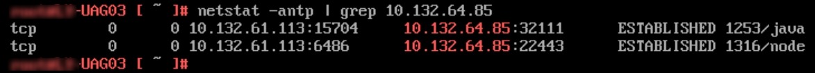 登录到UAG03的Console 控制台,使用 netstat -antp 并过滤
