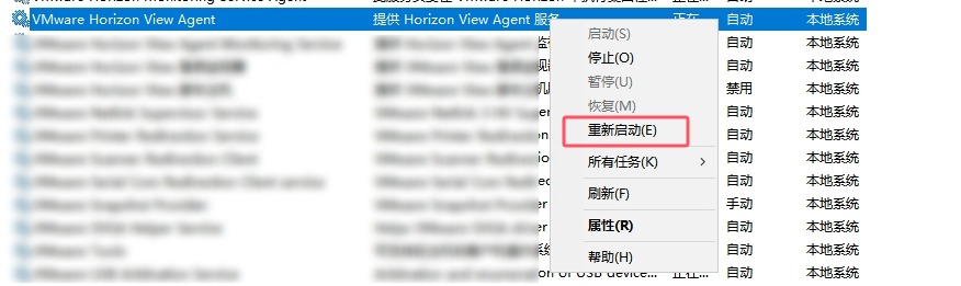 临时解决办法是将VMware Horizon View Agent服务重启解决