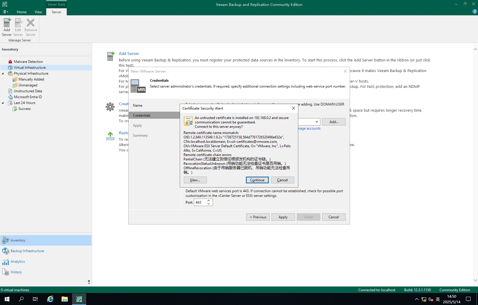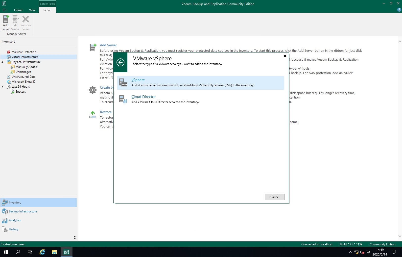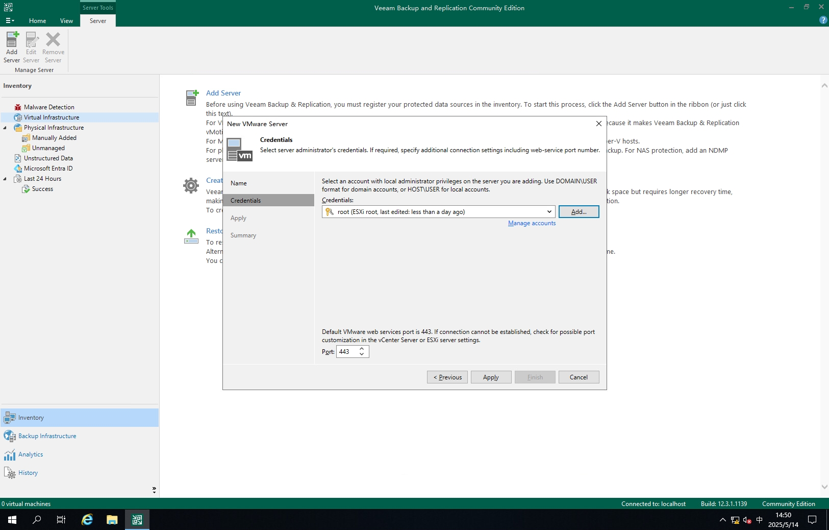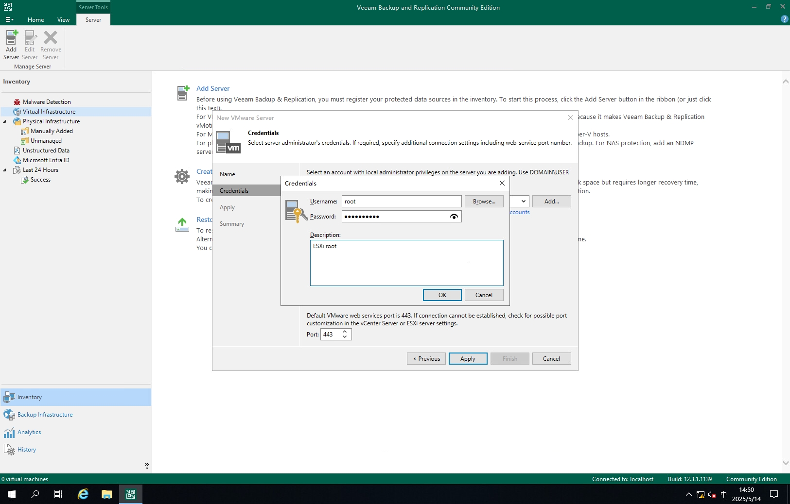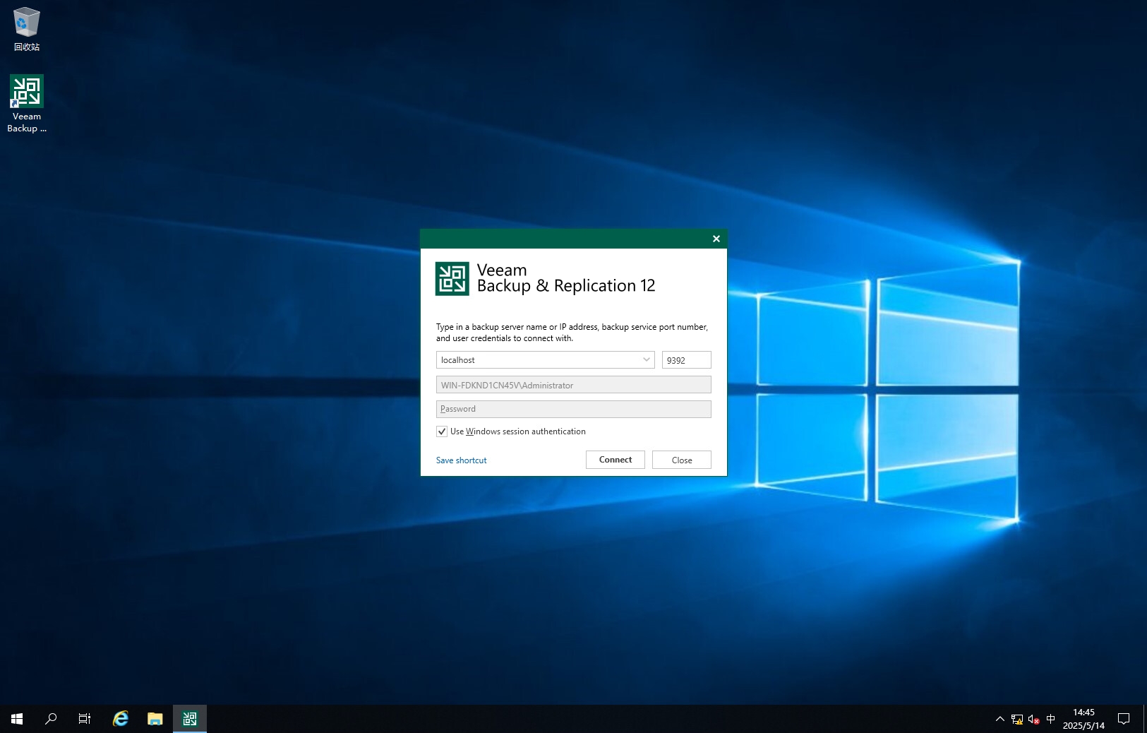 双击Veeam Backup & Replication图标登录控制台