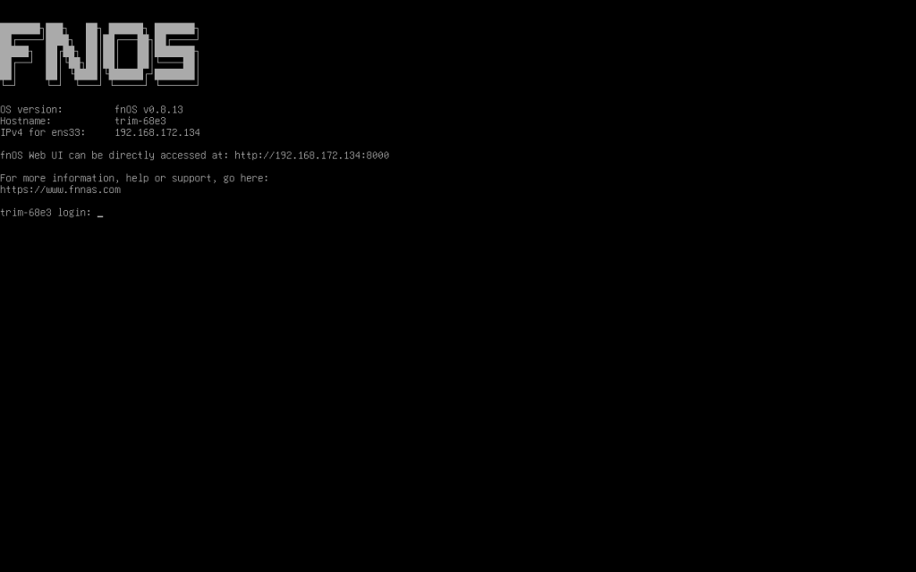 设备重启成功后将自动进入终端登录页,这意味着系统已成功安装并启动!