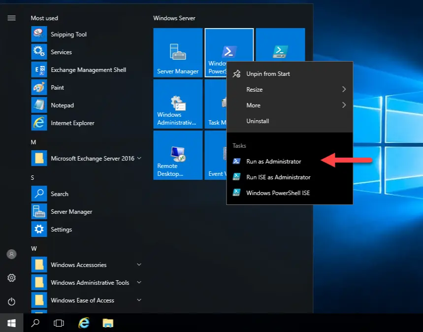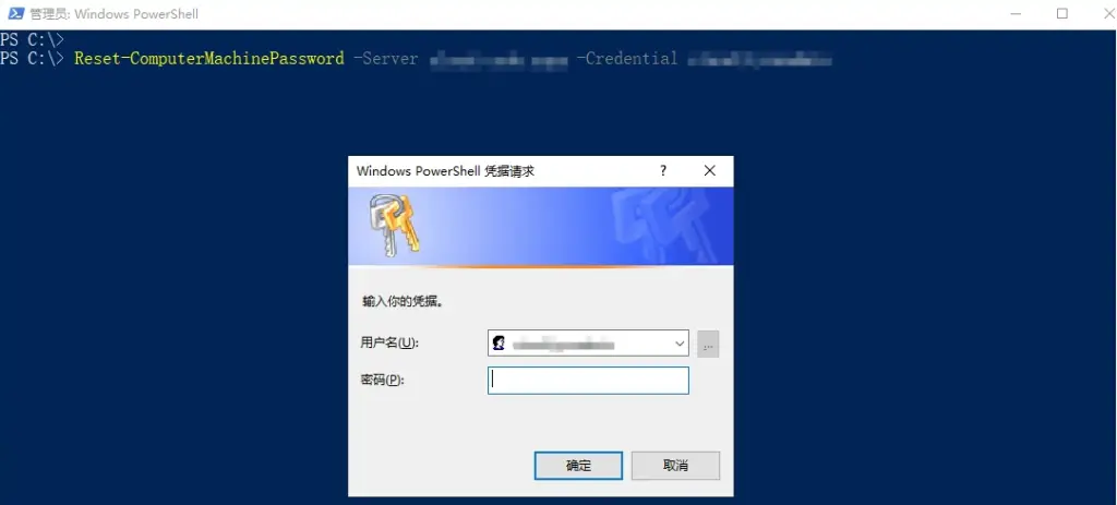 - 按以下方式运行 PowerShell , 然后输入域管理员用户密码,单击”确定”。