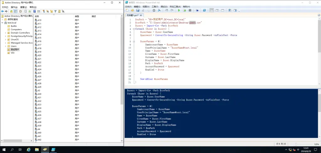 $ouPath = "OU=测试用户,DC=test,DC=local"
