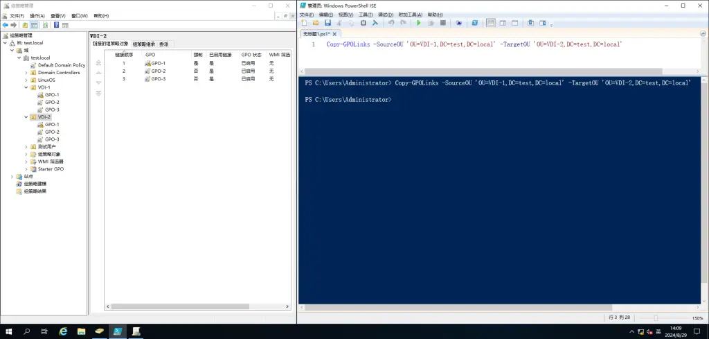 该需求适用于OU下链接了较多的GPO,不便于逐步每条单独手动链接的情况下使用。