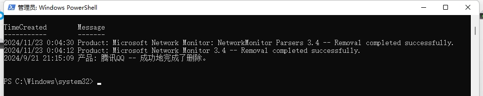 Get-WinEvent -FilterHashtable @{LogName="Application";ID=11724;ProviderName='MsiInstaller'} | Select TimeCreated,Message