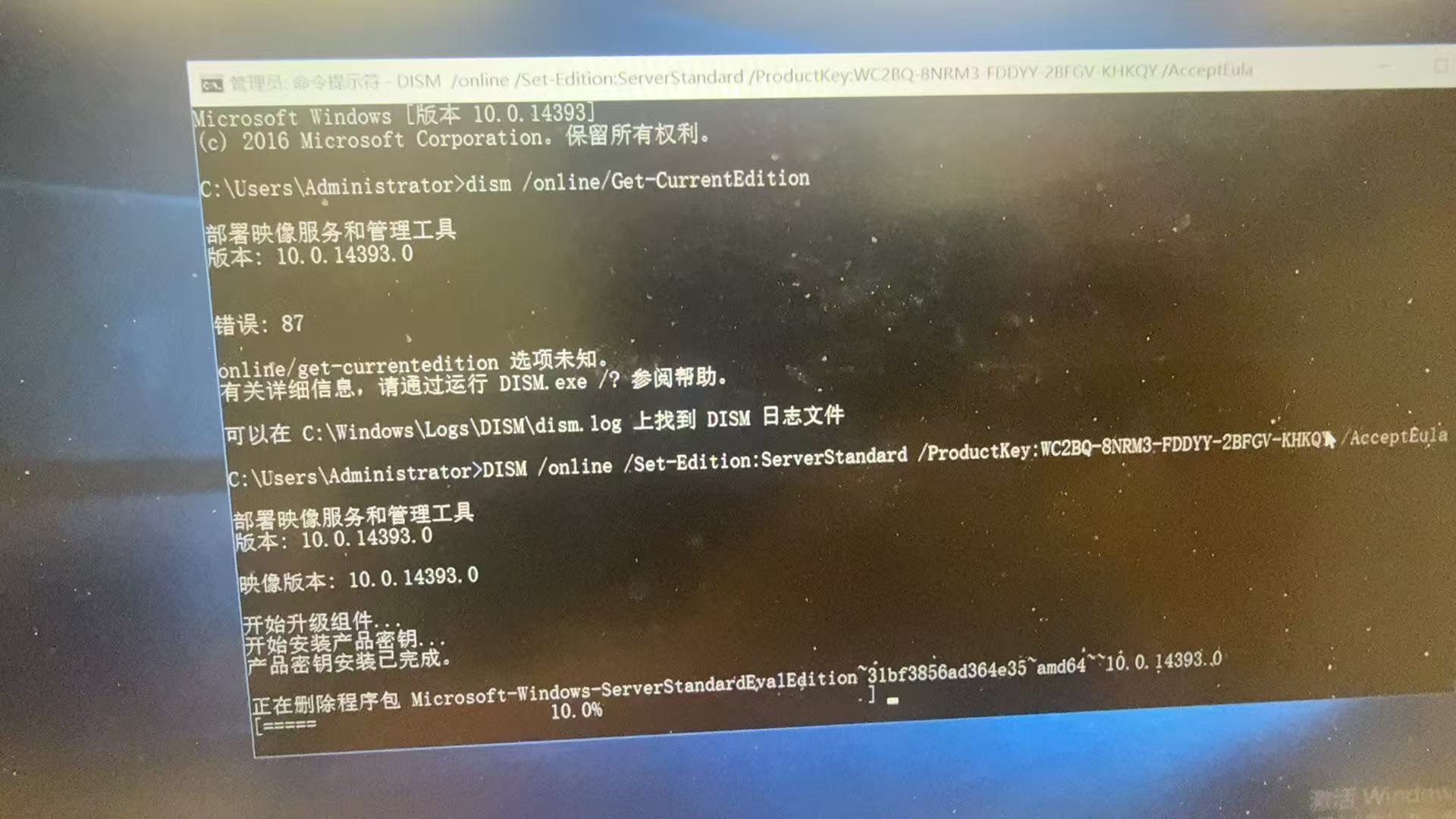 比如将标准版转换为 Datacenter 版本,执行如下命令: