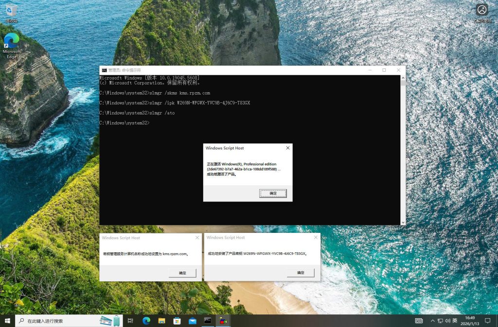 等三个提示窗口都弹出来,代表Windows系统激活成功。