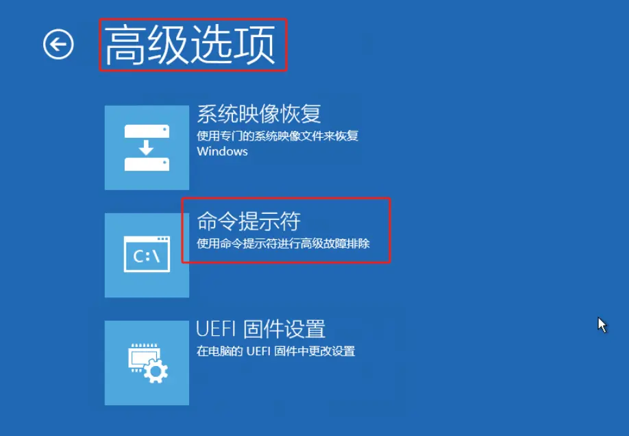 选择 “高级选项” “命令提示符”