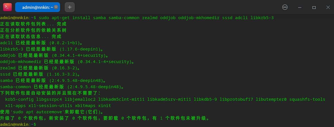 sudo apt-get install samba samba-common realmd oddjob oddjob-mkhomedir sssd adcli libkrb5-3