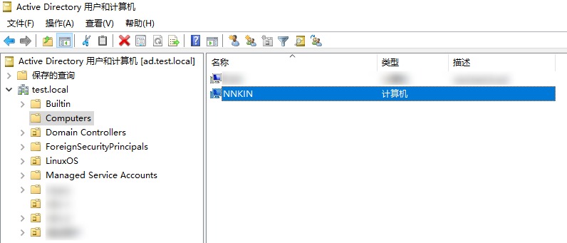 此时正常情况下就可以在Active Directory域中看到该计算机了