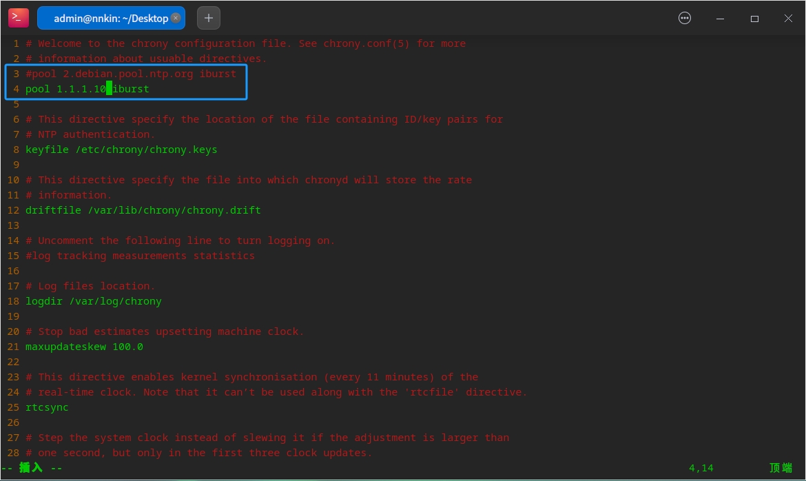 复制第3行为第4行 并将其注释,修改为NTP服务器地址