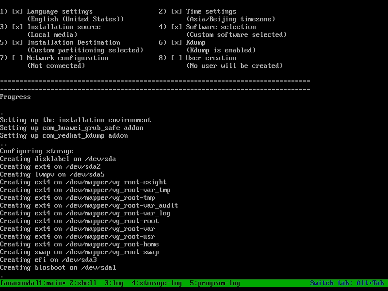 将上述生成的系统镜像写入优盘,或从服务器虚拟光驱引导启动,过程全自动,无需干预,安装完成后系统将自动重启,同时系统将使用上述镜像配置中设置的密码。
