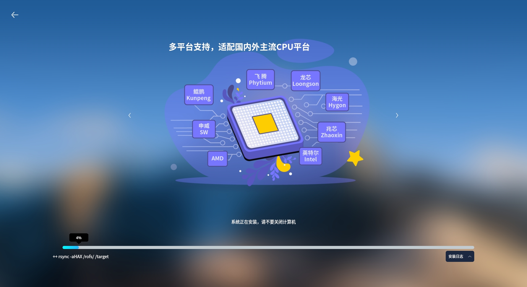 将麒麟操作系统镜像写入优盘,并将计算机从优盘启动,开始执行麒麟系统安装引导。