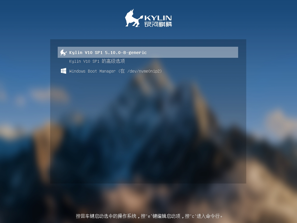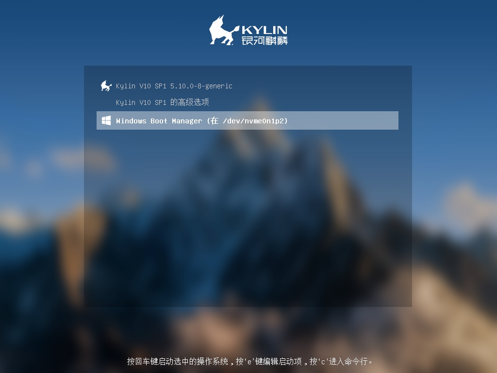 重启电脑后,系统会出现如下登录界面,可根据需求选择进入麒麟系统或windos系统。